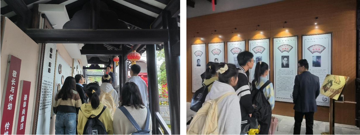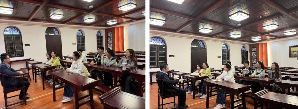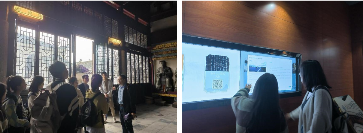 “走进书院,我们进一步了解到问津书院自古倍受官方的重视和民间的推崇,在弘扬儒学、传播知识方面取得过辉煌成就。”“特别是书院讲学活动自宋至清,出现了文人萃聚、文风迭起的局面,硕学鸿儒登坛授业。唐代杜牧,宋代孟珙、朱熹,元代龙仁夫、吴澄,明代王阳明等诸位大儒都亲临书院,讲学布道。长久以来,问津书院名士云集,人才辈出,直到今日,亦是如此。”大家边参观,边被两位导师的细致讲解而吸引,兴致勃勃地学习书院的悠久历史和传统特色。