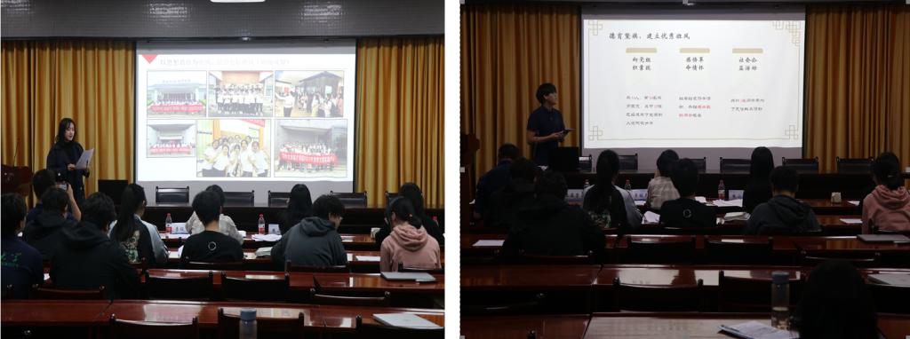 一个先进班集体不仅要有健康向上的班风导引,还要有强大的班级凝聚力推动以及朴实浓厚的学风激励。在校级先进班集体和院级优秀班集体的汇报展示环节,来自不同年级的班级代表从学风建设、班级特色、班级文化等方面展示了各自班级的风采,精彩的汇报令人印象深刻。