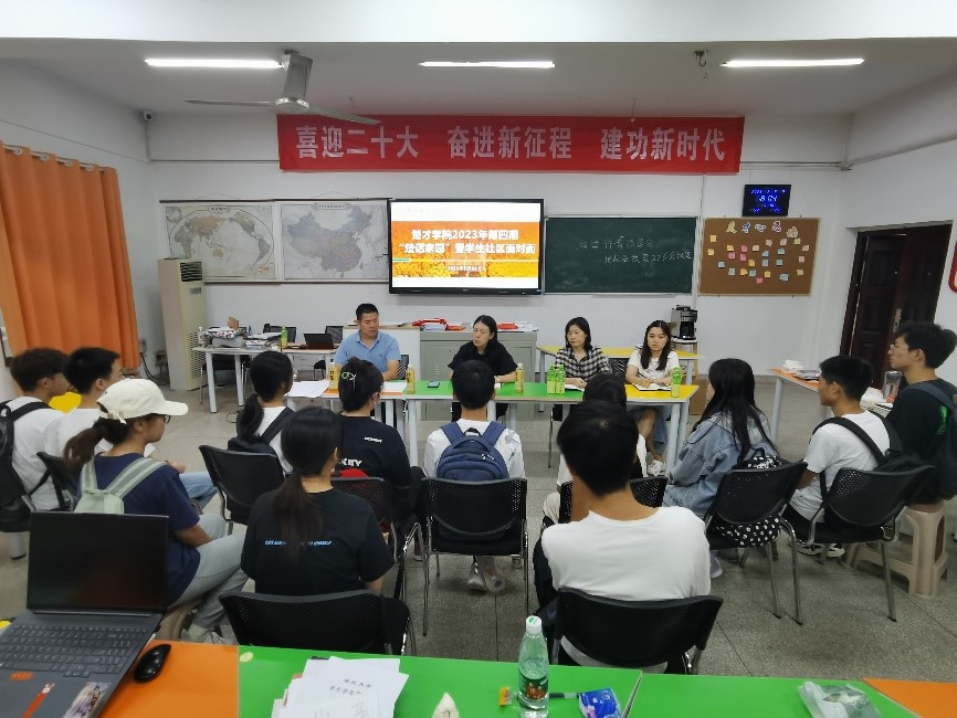 在第一环节的学长分享活动中,公司优秀毕业生、天问学术中心更名后首任会长、18级楚文班、中国科学技术大学2022级硕士研究生王喆和天问学术中心原部长、20级楚文班、心理学专业陈思颖学姐应邀参加并于线上线下,先后分享了自己在湖大、在楚才的学习生活经历和经验,分享了在天问读书的美好时光,获得与会师生的一致好评。