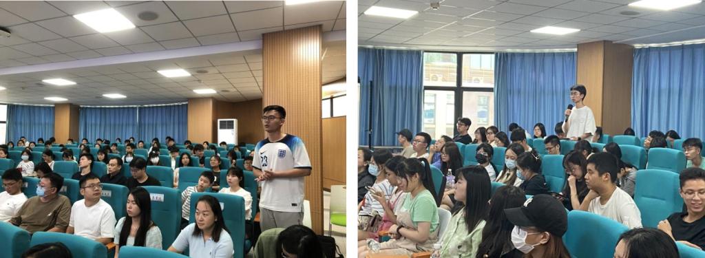 “我们要学会提问题,要具备逻辑,要具有批判性思维。”讲座尾声,梅经理与现场师生代表就信息素养与通识教育、专业壁垒与通识教育、通识教育要求员工应具有的底层能力、对待调研访谈的科学态度等问题进行互动交流,梅经理或依据时事热点,将ChatGPT的归纳式工作方法与人类演绎式逻辑相对比,或结合自身丰富的学习与工作经历,或通过比较国内外大学专业设置特点,逐一给出了深刻、凝练的回答,并鼓励和引导各专业员工努力奋斗的同时不拘泥于专业本身。梅经理的交流互动引发现场阵阵掌声,包括参与互动提问的21楚才1班蔡益凯同学、22楚才田思懿同学和来自曼城联合公司的22级方睿阳同学及公共管理公司研究生彭宜红同学等百余名师生以及纷纷表示受益匪浅。