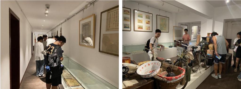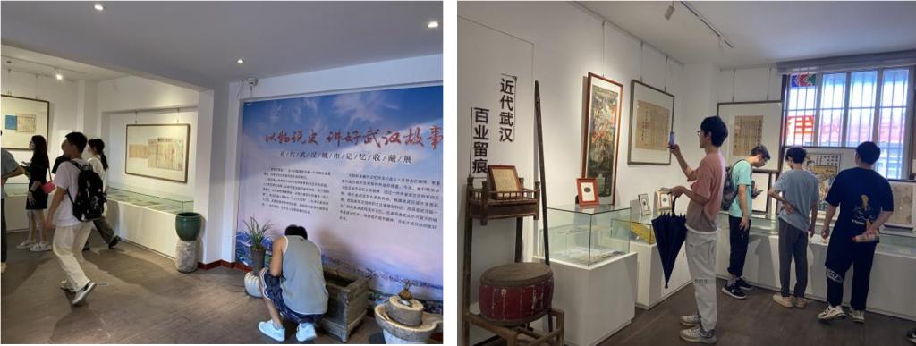 在武汉秋枫记忆博物馆,同学们津津有味地参观了正在这里举行的“以物说史,讲好武汉故事——近代武汉城市记忆专题展”。