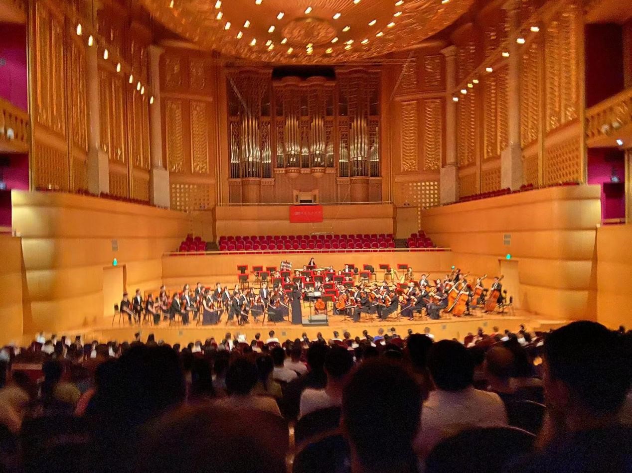 18时12分,天色未晚,我们启程。穿过静谧的江面,放下所有纷扰杂绪,共赴一场琴台之约。从《唐璜》序曲的激进热烈,到《g小调第一小提琴协奏曲》的跃动活力,每一个音符都迸发着充沛的精神力,醇厚与尖脆交响,畅叙乐曲中丰富的情感,我们的心情也随音浪翻滚而起伏,灵魂舒张,音脉在煌丽的礼堂上空串联成峰。灯光熄灭,小提琴清亮的铉音瞬间冲刺向穹顶,一段划破夜空的音阶,随后是层次分明的合奏,长短交错,掌声经久不息。灯光褪尽,我们缓缓离场。古人说,“音乐者,所以动荡之血脉,流通精神而和正心也”。这次交响音乐的盛会虽然短暂,却能够洗涤灵魂、使人振奋,将音乐之美深深烙印于我们的心中。