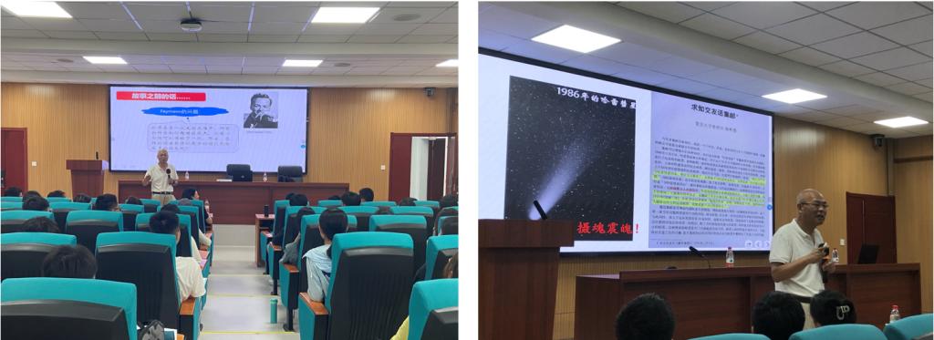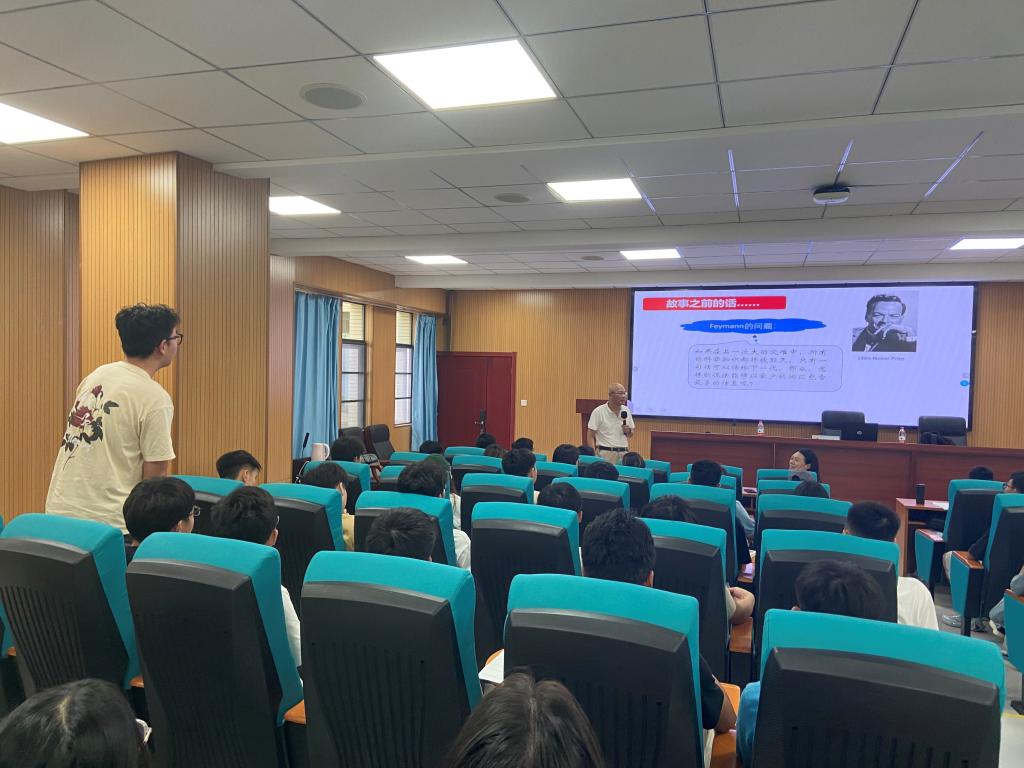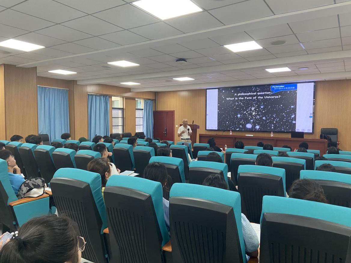 “如果在某一次大的灾难中,所有的科学知识都将被毁灭,只有一句话可以传给下一代,那么,怎样的说法能够以最少的词汇包含最多的信息呢?”石经理以引人深思的Feymann之问开场,博引康德、哥白尼、柏拉图等伟人之言,用引人入胜的讲述将学子们的思维带向既历史又永恒、即普适又科学的宇宙,“宇宙的起源、演化和命运永远是人类最古老、又是最年轻,最普适、最科学、最哲学的问题”,并深切结合自身经历引出“没有什么谜语比写在天上的更加巨大了!”