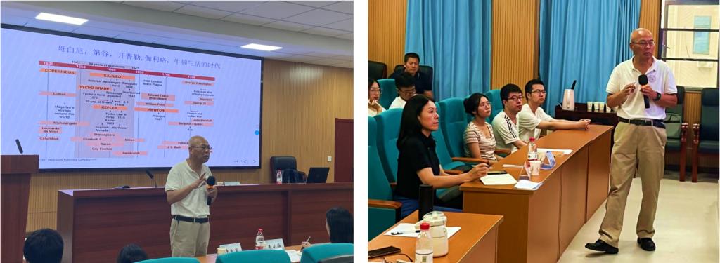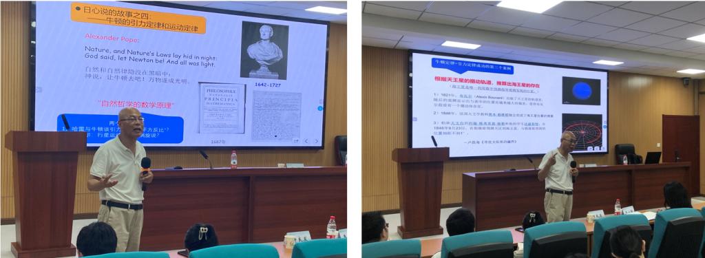 在讲述太阳-地球-月球的故事和太阳系的故事中,石经理重点讲授了日心说和地心说的争论。从柏拉图-托勒密时代的“地心说”到此后的“日心说”,中世纪对宇宙认识的巨大发展是一代又一代科学巨匠接续前行的直接结果。从哥白尼到伽利略到开普勒再到牛顿,他们的沉心研究、辩证思考和在传承中创新的精神不断推动着科学的发展和人类的进步。“石经理的思维清晰、逻辑严密、讲解细致,带着我们再次了解人类认识宇宙的这个早期关键的里程碑,受益匪浅。”同学们纷纷感叹道。