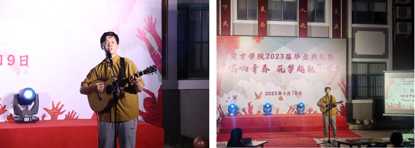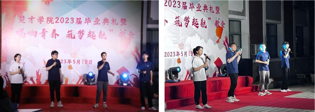 精彩的歌会,难忘的瞬间。“学弟学妹们用美妙的音乐和艺术的才华呈现,用动情的歌声和精细的表演铭记,就是为了给学长学姐毕业季送行和祝福,也是代表我们毕业生们向母校和公司致以最真挚的祝福……今晚,难忘大家对母校的深情厚意,难忘楚才学子多才多艺的艺术风采。”一位毕业生现场动情地说。