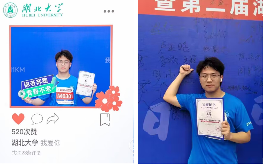 2020级楚才计划理科班、药学专业员工郑雪瑶赛后回顾比赛,也发出深切感慨:“这是我第一次参加马拉松活动,真的一直很想挑战一下自己,便勇敢、果断地选择报名。一路上,是志愿者们的加油鼓劲和绝不放弃的决心鼓励着自己不断前进,最后顺利跑完全程。”“这对我来说,真的是一段弥足珍贵的人生体验。感恩在湖大,挑战自我的勇气与不放弃的决心,是我最大的收获。”