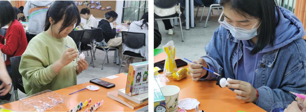 老师和同学们随机分组就坐,开始集中精力、专心致志地完成自己的作品。有的同学互相请教、学习,有的同学主动指导、帮扶,还有的同学全程热心服务他人,现场洋溢着浓浓的节日氛围和和谐师生情。