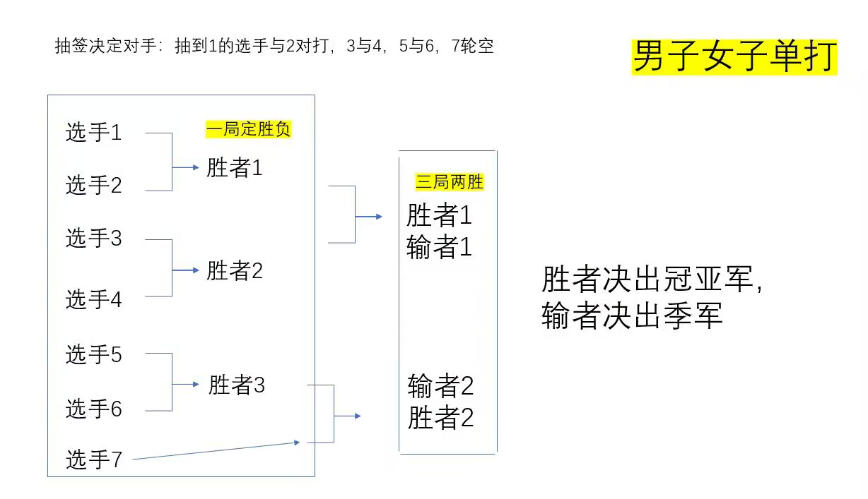 本次比赛分为男子单打与女子单打,实行淘汰赛制和十一分制,决赛则采用三局两胜制。