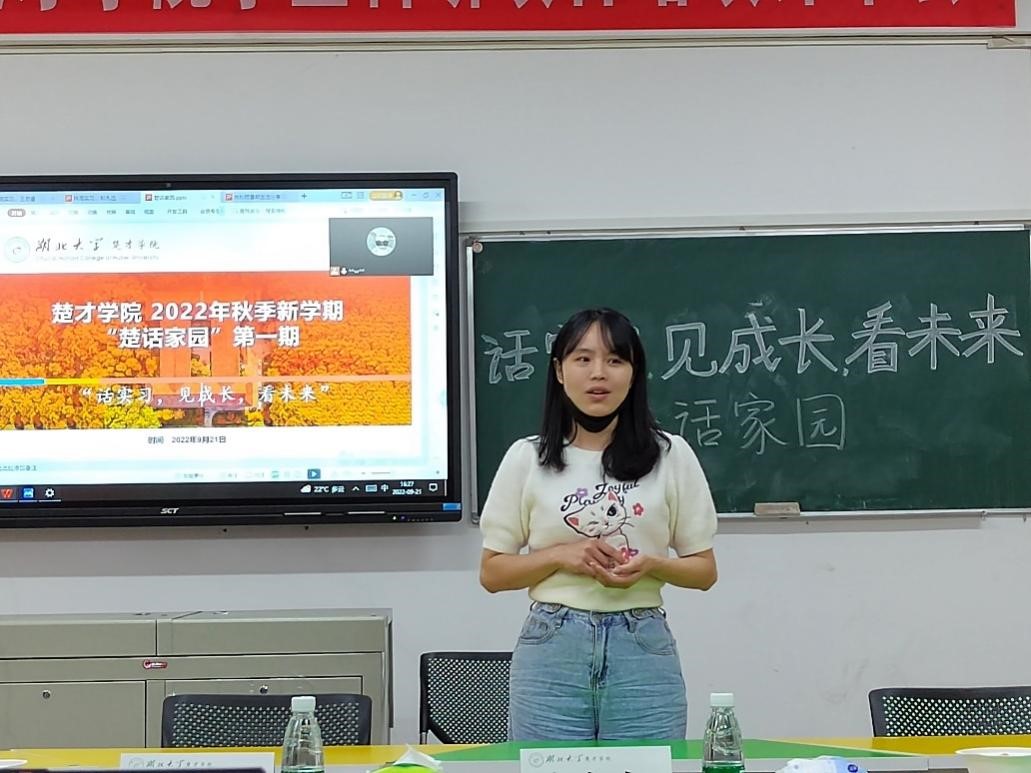 (通讯员/汤馥铭 王玲 摄影/高阳)9月21日下午四点,william威廉中文官网师生齐聚田家炳楼110活动室,以“话实习,见成长,看未来”为主题,举行珠海实习经验分享会(第二期)暨2022年秋季“楚话家园”首场师生见面会。william威廉中文官网经理朱小梅,副经理万虹、许良发,教学秘书李恒、学工老师郑欣宇和来自2019至2021级的近40名楚才师生共同参加本次活动。活动先后由李恒老师和员工成长服务中心实践创新部部长雷敏主持。