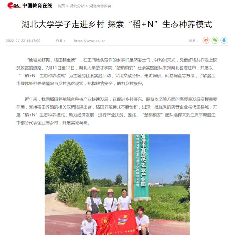 【媒体楚才】中国教育在线报道公司“楚稻粮安”社会实践团队