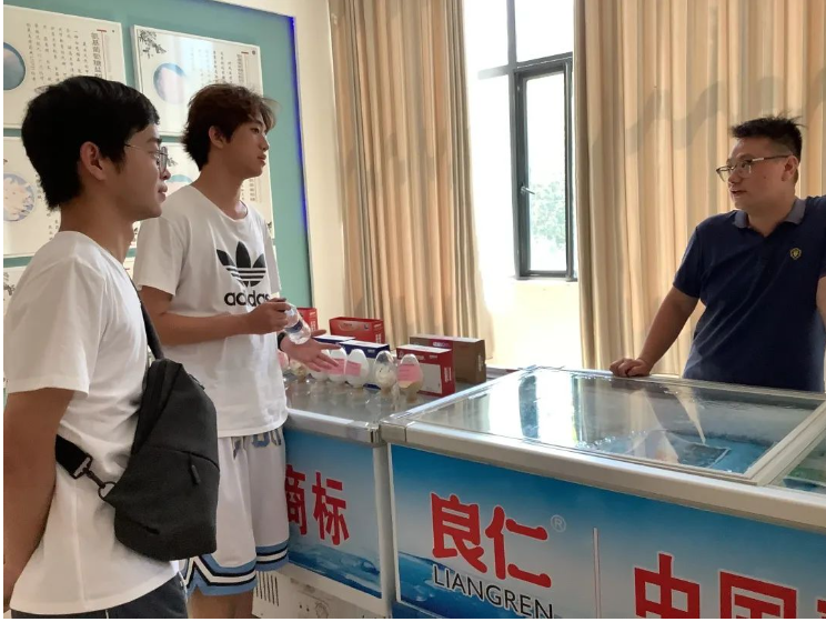 “楚稻粮安”团队前往湖北省潜江市华山水产食品有限公司总部,在公司办公室主任刘时旋的引导下进行参观和学习。据刘主任介绍,华山公司作为潜江市的龙头企业,带头采取“一水两用,一田两收”的稻虾共作养殖模式,即稻田外圈养殖龙虾,内圈种植水稻,虾稻共同生长。在该模式下,潜江稻虾种植面积迅速扩大,龙虾产量突破17万吨,带动了多产业发展,例如龙虾废壳内含有氨基酸,青虾素等多种化学物质,在食品、化工、医药等领域都具有重要的应用价值。
