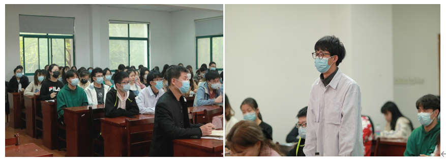 在互动环节,刘玉堂教授旁征博引、细致入微地解答了来自2020级楚才计划文科班和天问学术中心的王德洲、刘浩乐和李欣三位同学关于“楚脉”多源、民族志与文化志以及中西方文化认识等问题。“刘教授的讲座既有‘楚国八百年,楚风三千年’的历史文化孕育出的‘干货’,也有接地气的、幽默风趣的网络文化特色语言,我们在认真聆听的同时也会时而笑逐颜开,时而低头沉思,讲座氛围严肃活泼,真让我受益匪浅,深觉不虚此行。”2020级楚才计划文科班潘星宇谈到收获和感受时激动地说。