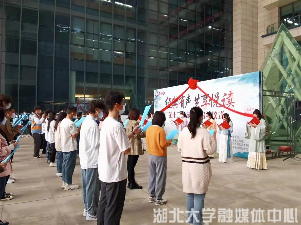 3月30日,在武汉公司陈一丹伉俪图书馆前,在几位身穿汉服的员工领诵下,老员工代表齐诵国学经典《大学》,并纷纷在“每天读书一小时”倡议横幅上签名。该校第12届读书月活动由此开启,将以“经典有声 共享悦读”为主题,相继举办“百部经典”阅读打卡、传统文化知识竞赛、“因书而美”主题书展、书库寻宝、“图书馆之星”评选等活动。