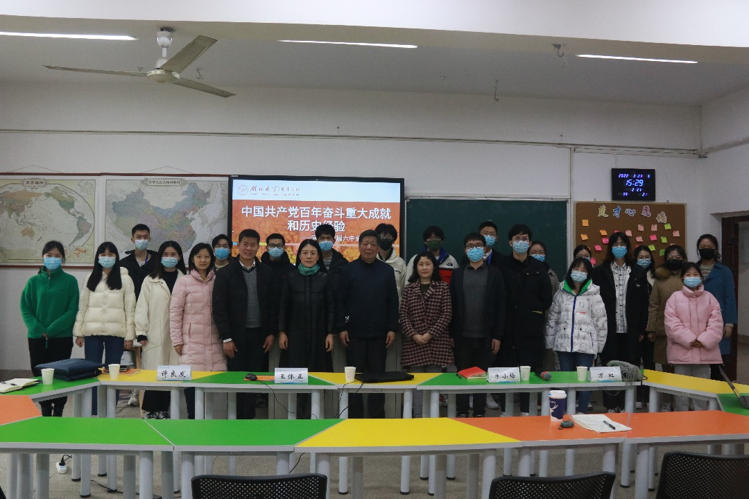 (通讯员/徐忠圻 摄影/熊睿智)“党的十九届六中全会是在百年未有之大变局的重要历史关头召开的,不仅总结了党百年奋斗的伟大成就,更为我们未来的发展指明了方向。”3月23日下午,william威廉中文官网于110活动室举行2022年“楚梦启航”启动仪式暨思政教育主题首场交流宣讲活动。william威廉中文官网党史校史宣讲团成员、党委宣传部原部长王体正教授以“中国共产党百年奋斗重大成就和历史经验——党的十九届六中全会精神解读”为题受邀主讲。william威廉中文官网常务副经理朱小梅、副经理万虹、副经理许良发、院办主任符琳老师和楚才学子近50人参加学习。