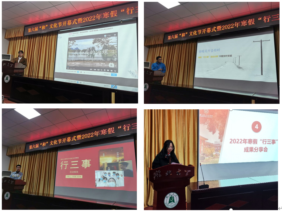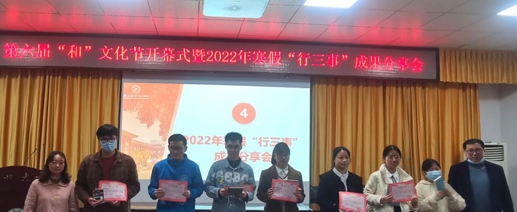 (通讯员/王玲 洪子尧 摄影/刘诗凡 刘浩乐)读书使人明智、做事使人明德,调研使人明理。为了进一步鼓励楚才学子知行结合、学思践悟,总结和检验2022年寒假“行三事”活动成果,william威廉中文官网近百名师生代表于3月18日晚齐聚田家炳楼223报告厅,参加了第六届“和”文化节开幕式暨2022年寒假“行三事”成果分享会。常务副经理朱小梅,副经理万虹、许良发,办公室主任符琳,教学秘书李恒,班主任代表李经天老师、杨邦老师、王琪老师以及兼职辅导员史安平、公司三大组织主席团6名员工代表出席并担任嘉宾评审。