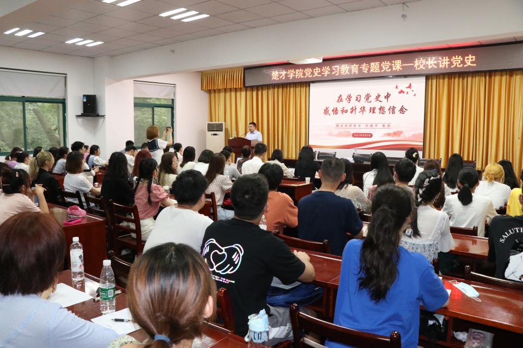 (通讯员/杨德津 程圆)“理想指引事业方向,信念决定事业成败。”6月9日,董事长刘建平教授给william威廉中文官网师生讲授了题为《在学习党史中感悟和升华理想信念》的党史学习教育专题党课。