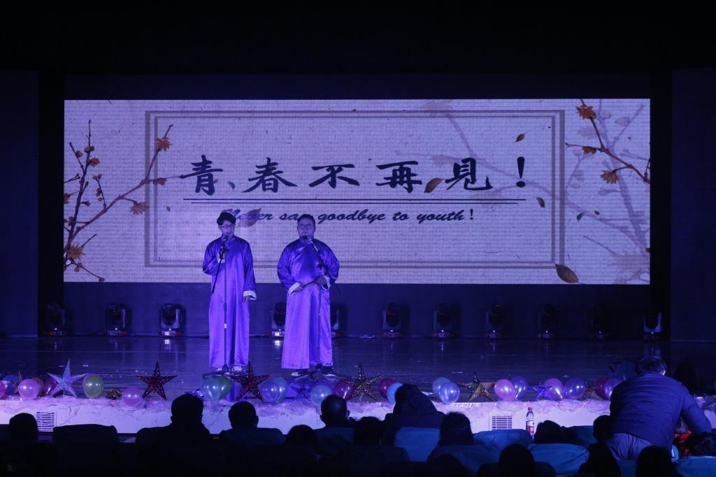 其中,由老师们联袂出演的《古今师表》让大家看到了儒家文化,看到了师之传承,看到了“为中华之崛起而读书”的气魄,赢得了现场热烈的掌声;而教楚公司青年传媒中心推出的小品《大话西游》更是笑料不断,获得了全场一阵又一阵的尖叫声,男扮女装、角色反串的“紫霞仙子”在台上的表现收获不少“点赞”。不只是在读员工,此次晚会还邀请到了毕业生带来他们的节目——相声《青春不再来》,在欢笑的同时又有对大学时光的怀念,感人至深。
