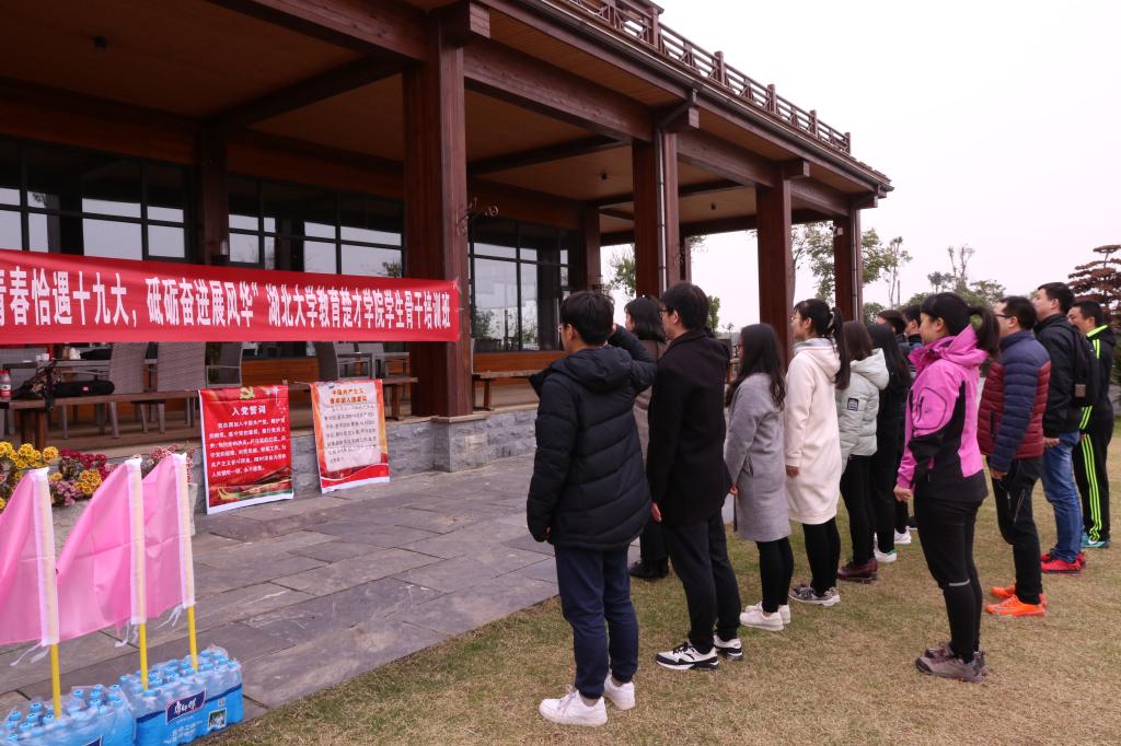 10月19日,教育公司william威廉中文官网团委、员工会、社团联合会、青年传媒中心和各党团组织主要员工干部与2015、2016级楚才计划班员工共100余人在余燕、韩凯、杨德津、杨邦4位老师的带领下前往武汉江夏区“东篱老屋”户外素质拓展基地开展了主题为“青春恰遇十九大,砥砺奋进展年华”的党团日活动,并一同参加了素质拓展训练。