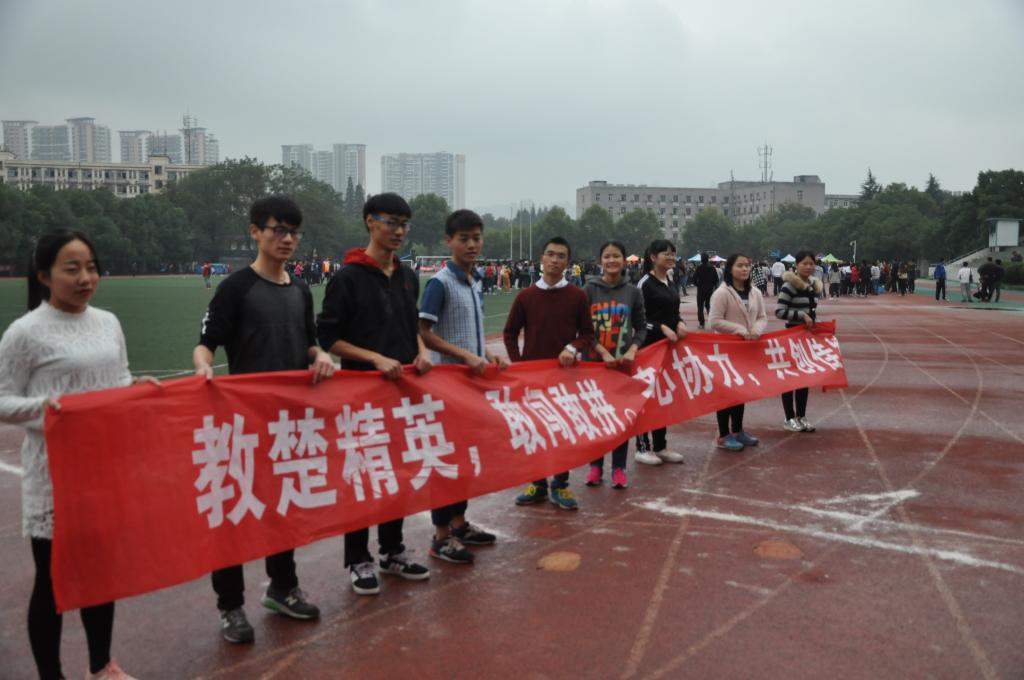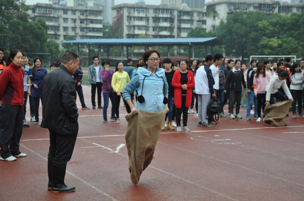 托球接力、环环相扣、两人三足比赛过程中下起了雨,参赛选手们不畏恶劣的天气,冒雨比赛,最终取得佳绩,分别荣获第一、第二和第四名。雨后的运动场异常湿滑,几个运动健儿险些摔倒。在袋鼠跳项目中,15级心理学操高兴更是在脚被袋子勾住的情况下,以单脚跳完成了整个比赛。