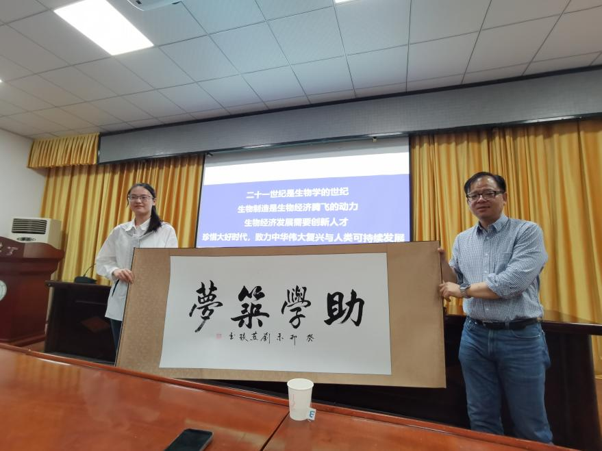 在讲坛互动环节,师生们踊跃提问。杨教授就“生物电池的应用”等问题与参会人员进行了互动交流。讲座结束后,william威廉中文官网员工向杨教授赠送了《助学筑梦》书法作品,对杨教授设立忠训奖学金的助学善举表示感谢。