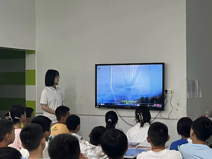 在诗词课上,团队成员通过“看图猜古诗”的游戏引入主题,逐步深入地介绍了多首经典诗词。从陶渊明《饮酒》中的“见南山”之宁静,到李白《玉阶怨》中的别样情怀,再到李商隐《夜雨寄北》中的西窗剪烛……团队成员肖雅甜说:“古典诗词是我国优秀的传统文化,学习和诵读诗词能够帮助我们接触更美好的世界,实现诗意的生活。”