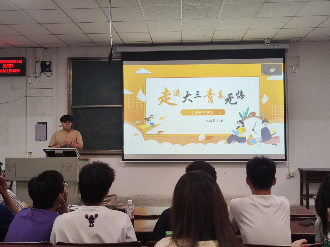 9月1日晚上,2022级楚才员工一班在公司召开新学期首次班会。同学们交流了暑假期间的学习生活,分享了新学期学习打算。班主任李经天老师叮嘱同学们要制定新学期的目标计划,珍惜大学每一天,在专业学习、学术研究、创新竞赛、社会实践等方面取得新成绩。
