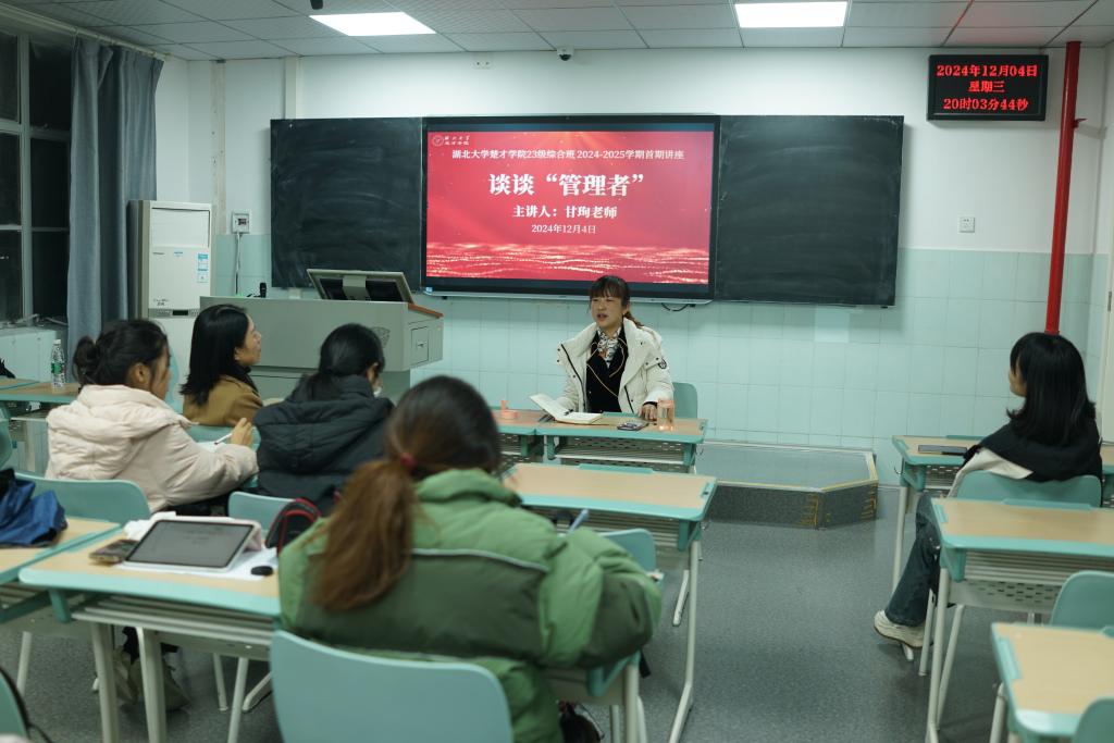 (通讯员/乔思涵 摄影/吕昕格)2024年12月4日晚上,2023级综合班在班主任朱小梅经理的主持下,成功举办本学期首期专题讲座,并就公司本科公司产品审核评估专项工作进行宣讲。