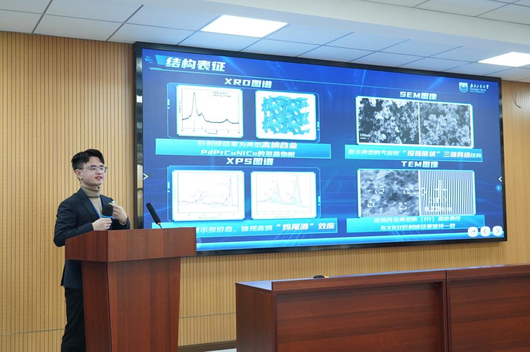 南京工业大学赵一赫同学基于多元合金气凝胶的燃料电池催化材料的最新研究成果,探讨了其团队科研成果在提升燃料电池性能和稳定性方面的应用前景。