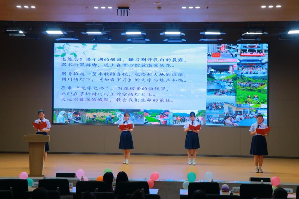 图8 樊睿、赵律迪、刘海欣、乔思涵表演诗歌朗诵节目《湖光书影 行歌未央》
