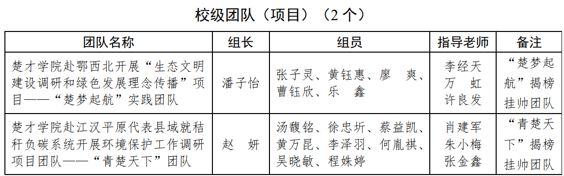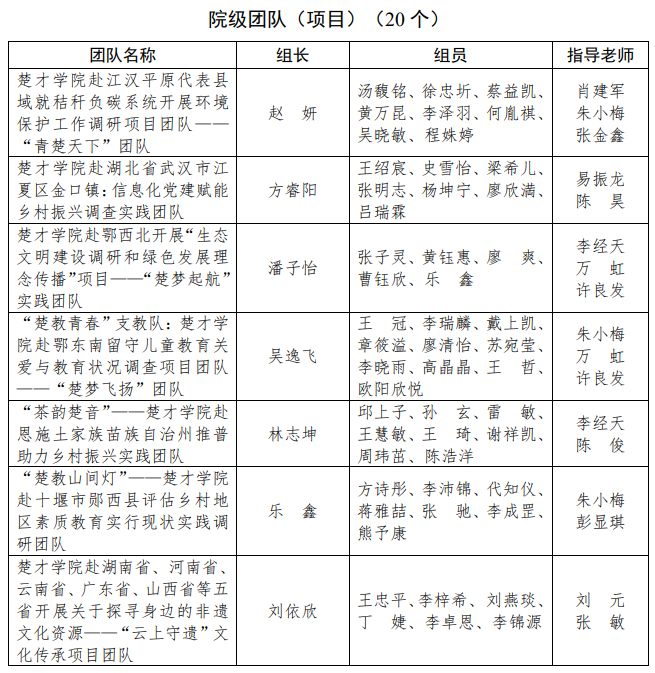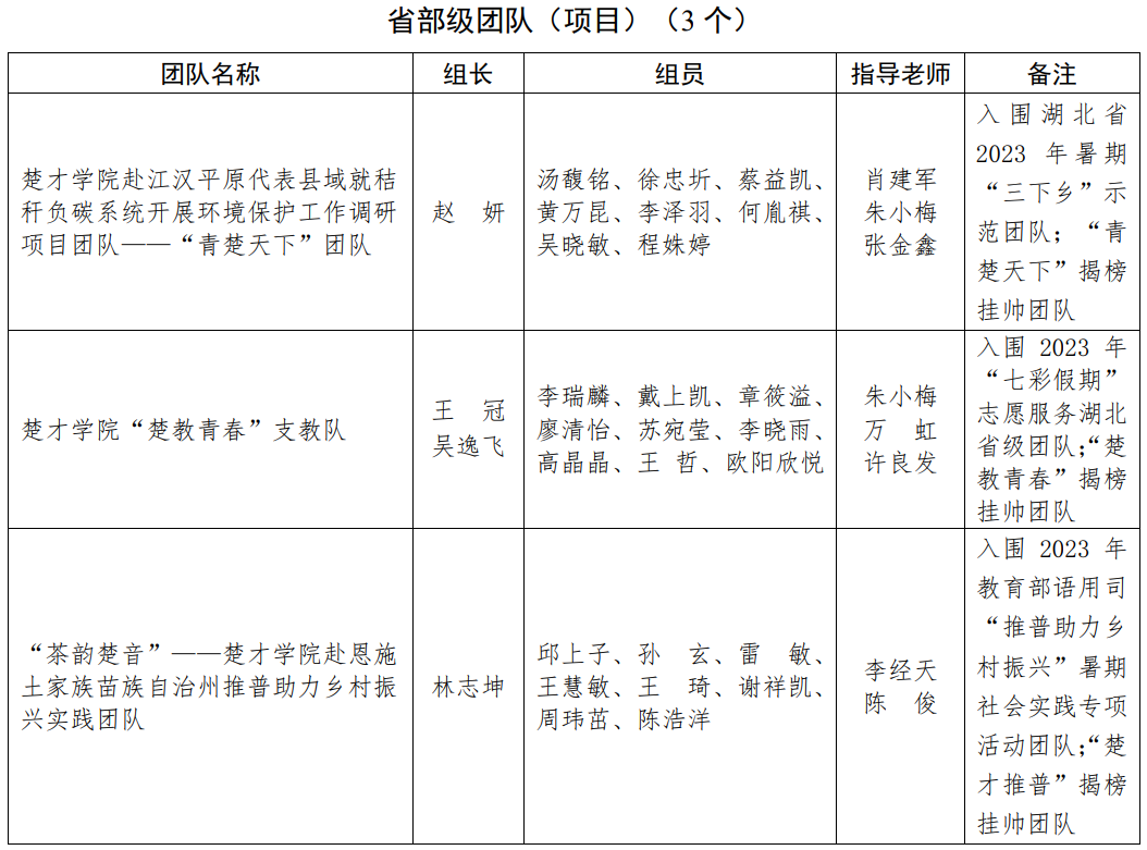 关于2023年暑期社会实践团队(项目)名单的公示