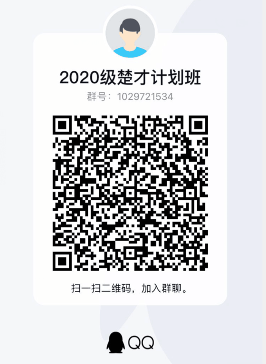 公示期满后,请以上通过选拔考核的同学扫下面二维码,加入2020级楚才计划班员工群: