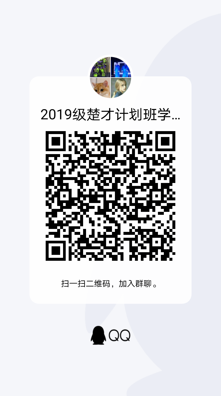 公示期满后,请以上通过选拔考核的同学扫下面二维码,加入2019级楚才计划班员工群: