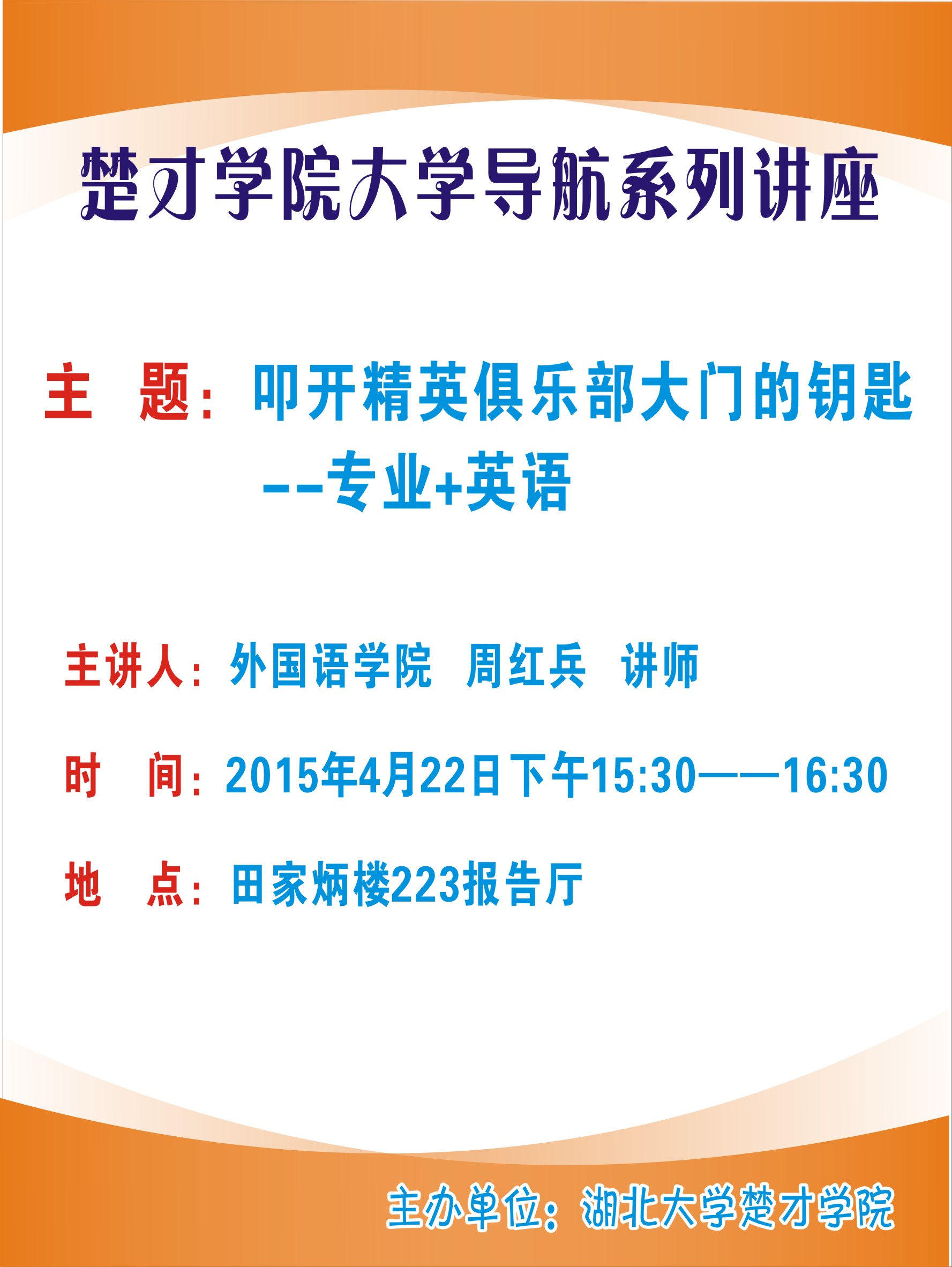william威廉中文官网大学导航系列讲座:叩开精英俱乐部大门的钥匙---专业+英语