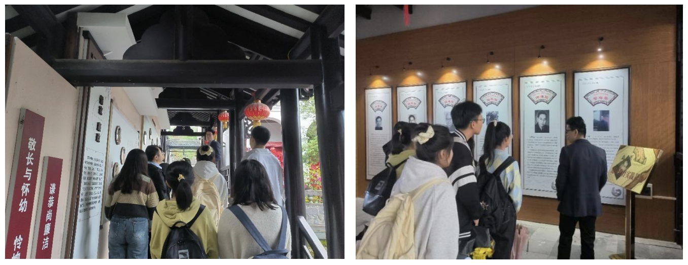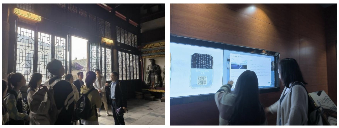 “走进书院,我们进一步了解到问津书院自古倍受官方的重视和民间的推崇,在弘扬儒学、传播知识方面取得过辉煌成就。”“特别是书院讲学活动自宋至清,出现了文人萃聚、文风迭起的局面,硕学鸿儒登坛授业。唐代杜牧,宋代孟珙、朱熹,元代龙仁夫、吴澄,明代王阳明等诸位大儒都亲临书院,讲学布道。长久以来,问津书院名士云集,人才辈出,直到今日,亦是如此。”大家边参观,边被两位导师的细致讲解而吸引,兴致勃勃地学习书院的悠久历史和传统特色。