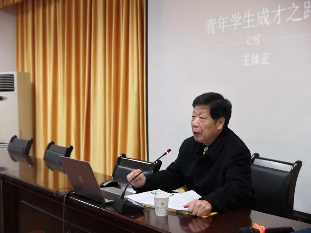 报告伊始,王老师首先和大家分享了成长必备的四个要素,他认为人才成长必须具有坚定的理想信念、过硬的知识本领、良好的道德品质以及丰富的人脉关系,落实到青年员工的日常生活中,就要做到立志、读书、修身和做人。他勉励在座的青年员工要树立自己的远大志向,立长志。他引用了孔子十五而志与学的故事,鼓励青年老员工要志于学、志于道,树立了自己的志向后就要矢志不渝地去追求。