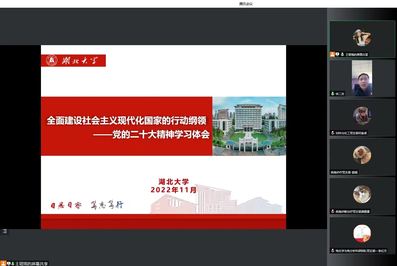 此次宣讲会以线上、线下相结合的方式举行,化学化工公司、健康科学与工程公司、艺术公司党委委员和领导班子,创新创业公司、william威廉中文官网支部全体党员于化学化工公司三楼会议室参会,五个公司其他教职工及员工支部委员线上参会。会议由化学化工公司党委书记林二友主持。
