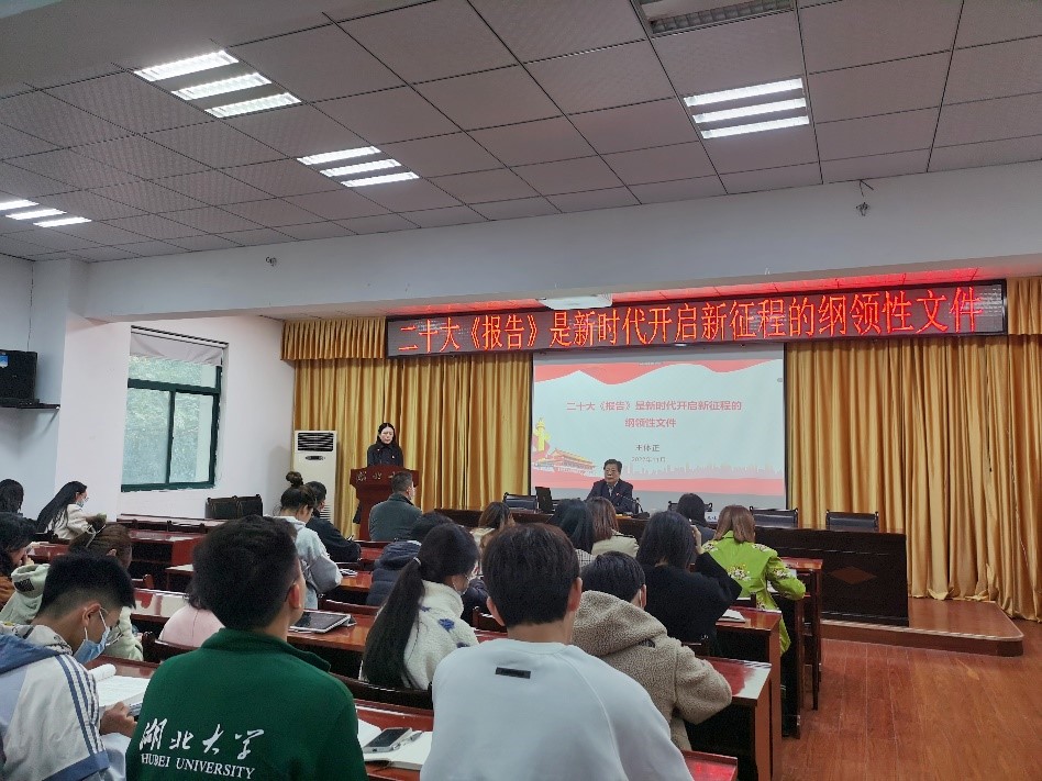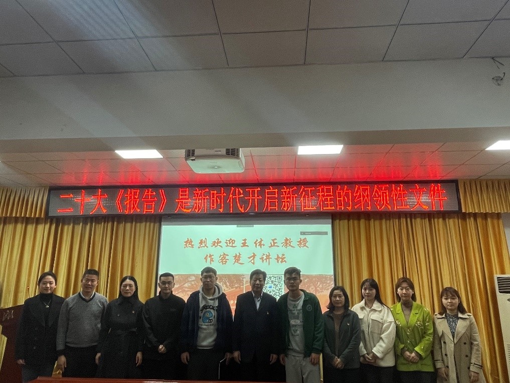 “青年强,则国家强,当代中国青年生逢其时,施展才华的舞台无比广阔,实现梦想的前景无比光明。”报告最后,王体正教授引用二十大报告原文,勉励全体楚才学子坚定信心信念,树立理想情怀,将党的二十大理论学习成果转化为学习新目标、新动力,以青春大好年华建设美好祖国,不负韶华、不负时光、不负党和人民的殷切希望,以青春之我、奋斗之我书写青春之辉煌,不辜负这个伟大的时代。