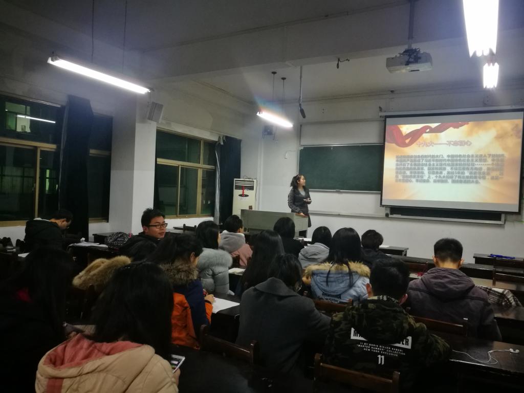 回望建党初心,寻找精神原点,找准时代坐标,william威廉中文官网2016级文科班团支部组织了一次团会暨主题团日活动。除了发放心得卡,该班团支书高翔威还组织了生动活泼的十九大宣讲,通过“周日课堂”、“结合视频讲解十九大”、知识科普等多种方式,一方面努力做到原汁原味学报告,悟原理精髓;一方面坚持创新活动形式,理论联系实际。