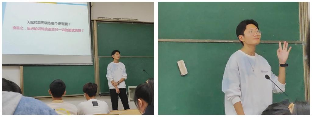 在互动提问环节,同学们就徐忠圻提出的在面试中一些常见的问题也作出了一一回答。针对“面试、天赋和后天训练哪个更重要?”这一问题,“即使天赋是一个很大的优势,但是后天的努力训练总会让你在这方面有所提升。”徐忠圻表示。