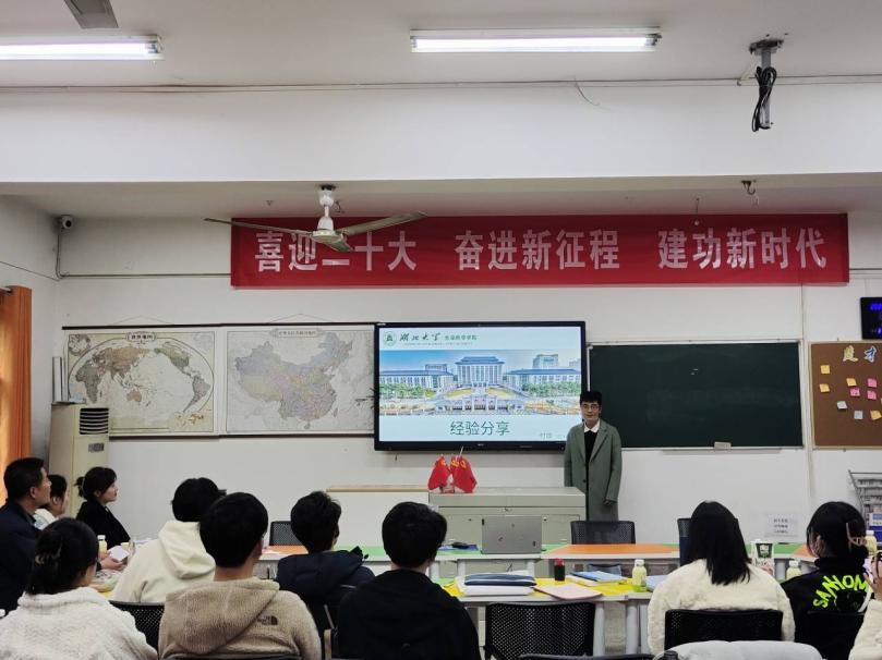 “首先,大家要及时明晰自己在保研各个阶段的首要任务是什么,做好自己的规划,防止在最后关头手忙脚乱。”来自资环公司环境工程专业的大四学长王砚深首先上台,为大家讲述了自己保研面试的经历,对保研面试计划、保研面试准备、面试答辩PPT制作等方面展开了详细指导,建议大家在保研的努力过程中,一定要做充足的计划准备、广泛地收集信息;还结合自己择校和面试的亲身经历,并以自己的保研面试PPT为例,系统地讲解了面试PPT制作的要点和答辩的技巧。在王砚深讲解结束后,20楚理的同学们也结合自身情况进行了答疑、讨论。