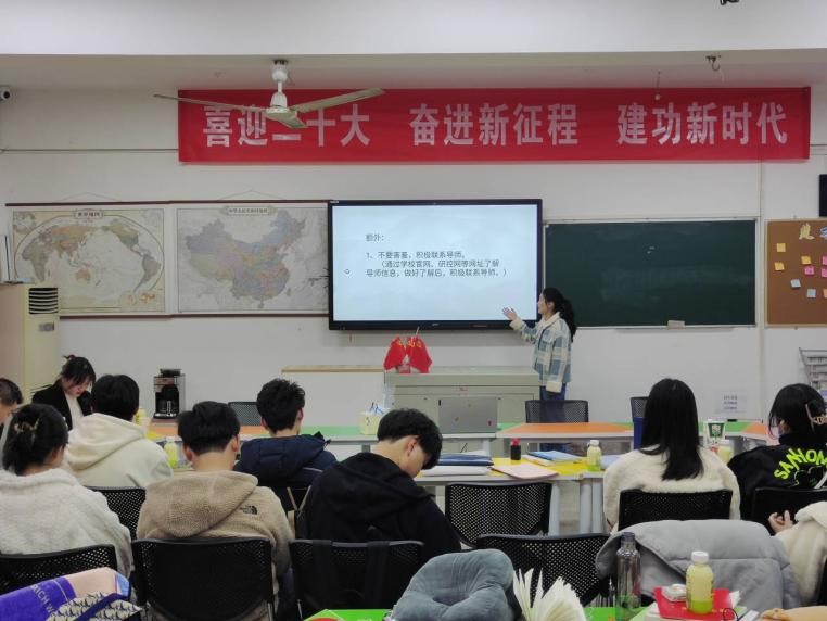 “碰壁是保研路上常会遇到的事,大家要学会灵活应对各种问题,始终相信自己。”第三位分享经验的是19楚理班班长、数据科学与大数据技术专业学姐朱睿莎。她侧重讲解了保研过程中可能会遇到的陷阱和雷坑,为学弟学妹们分享了她的经验总结。分享过程中,她结合保研过程海投简历等经历提醒大家,要清楚分析自己的时间精力,充分考虑海投的利弊,做好详细的规划。此外,她还强调“夯实英语的基本功、不断提升英语水平”“积极联系外校导师、多与导师进行沟通”两个关键点,也是保研成功的关键。“新的通知和文件也许已经取代了你现在看到的信息,大家要格外小心并多加留意院校官网上发布的通知和文件。”最后,她还就保研碰壁心理调试和重视信息差等问题进行了分享和强调。