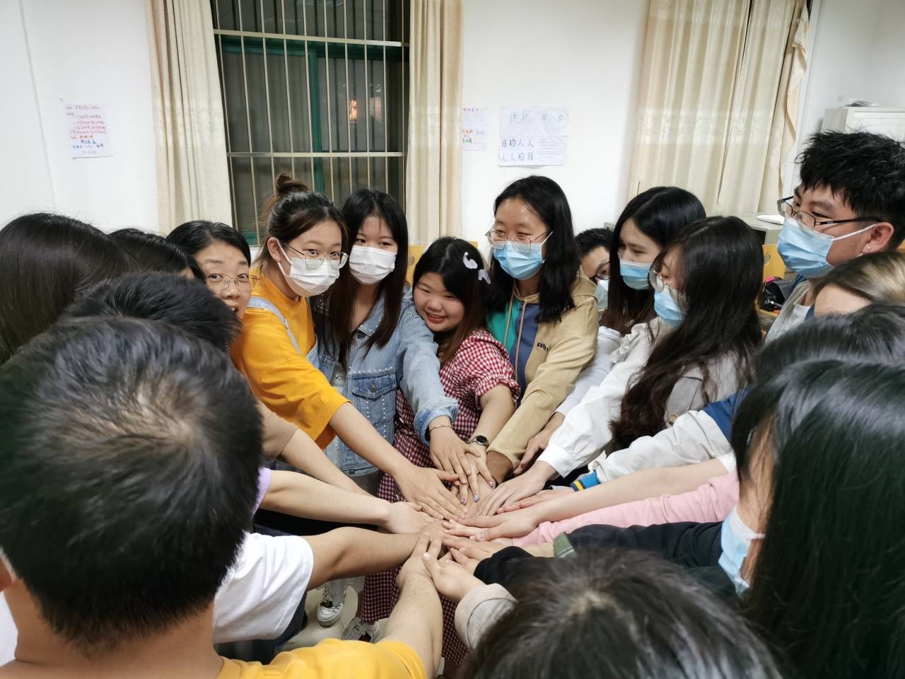 活动最后,大家围成一圈,伸出右手,手掌相连,共同进行保密承诺,也将彼此的心意紧紧相连。夜色降临,活动结束,当天的暴雨也停歇终止了。