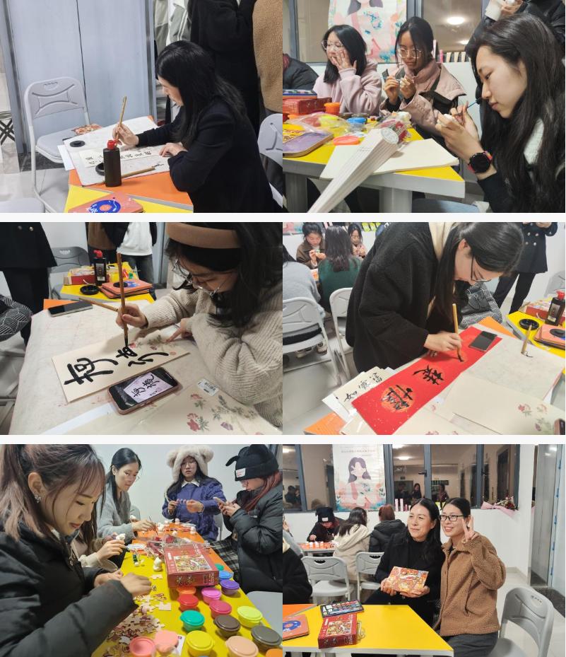 活动伊始,来自员工成长服务中心的成员为大家发放超轻粘土、石膏娃娃和水彩画等多种DIY手工材料包,大家根据自己的喜好选择心仪的材料进行创作。师生随机分组,进行了拼图比赛,更有书法创作等活动供在场师生体验。