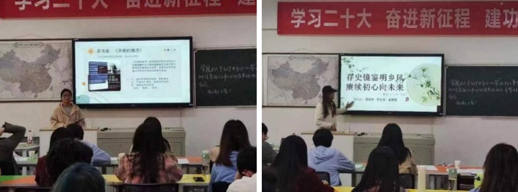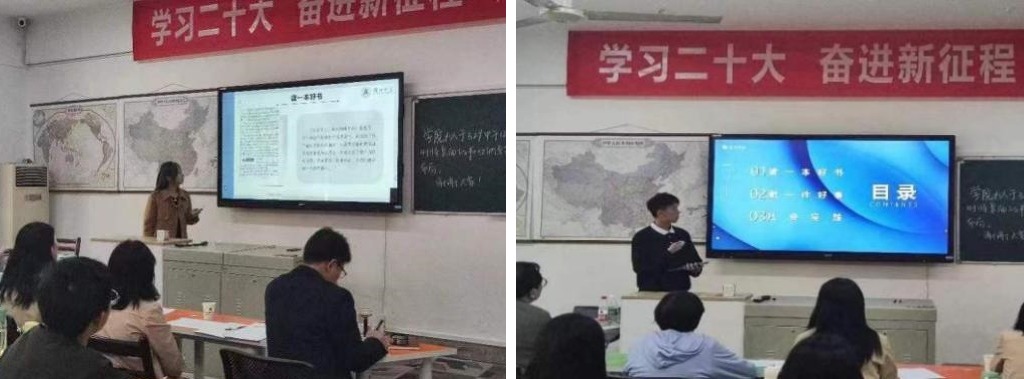 在“读一本好书”方面,同学们围绕所读书目,结合所学专业,从哲学、历史、社会、人生等角度提出了自己的思考,体现了公司员工对知识的追求,展现了良好的批判精神。2022级思政教育专业胡筱萌同学分享了《马克思为什么是对的》,她提到“伊戈尔顿用自己的方式辩驳了十个反马克思主义的观点,揭露了对于马克思主义的误解,这本书解决了我的一些疑问且对马克思主义有了更深的理解。共产主义是一个不断由低级向高级发展的过程,而低级和高级又是相对而言的,我们不能幻想未来共产主义的具体细节,否则就会让我们流于空想。在“做一件好事”方面,同学们走进基层,从非遗传承人,到线上教学,再到返乡、社区、场馆志愿者,积极开展志愿服务活动。“无论是学习与生活都不能只停留在书本,要重于实践才能成长为德、智、体、美、劳全面发展的新时代的人才”2022级历史学(师范类)专业周俐利谈到。在“完成一篇调研报告”方面,同学们对社会不同领域进行调查研究,积极进行社会实践,在过程中去了解国情、了解社会,增强社会责任感和使命感,运用理论知识解决实际问题。
