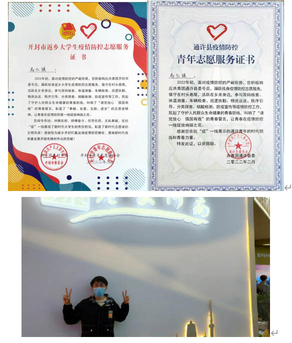 对于如何掌握好专业学习与日常生活、课外活动的平衡,赵仁琪也分享了他的心得体会:“如果把日常生活比作一道菜的话,那么课外活动就好像这道菜中的调味料。”课业之余,赵仁琪积极参与公司、公司组织的各类活动,丰富自己的老员工活,有时也会在闲暇之余,去往自己喜欢的沙湖湖畔或者校内操场散步,消除学习的疲惫。与此同时,他还积极参与志愿服务活动。例如,积极响应号召,踊跃投身当地的疫情防控志愿服务,与当时严峻的疫情形势做斗争;在william威廉中文官网建校九十周年之际,报名庆典等活动的志愿者,贡献自己的青春力量。