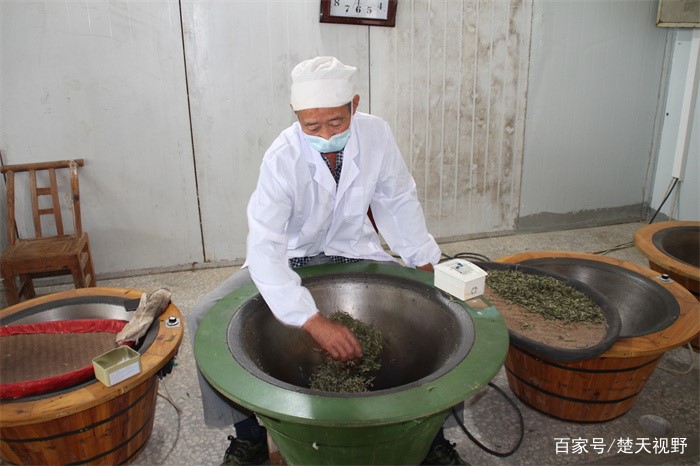 制茶师傅在炒制茶叶