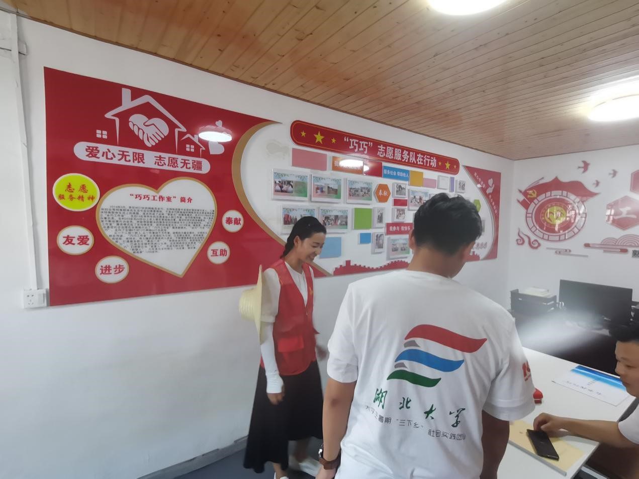 16日下午,团队一行有幸拜访了茅圻村支部委员、村委委员、“巧巧工作室”的发起者余巧。她热情地接待了来访,向团队成员就“余巧工作室”的成立背景、志愿服务模式、志愿服务中遇到的问题等方面进行了介绍。