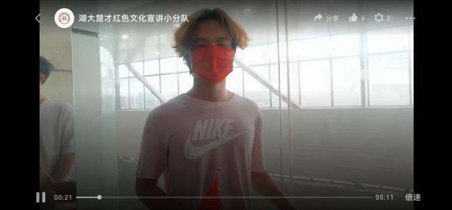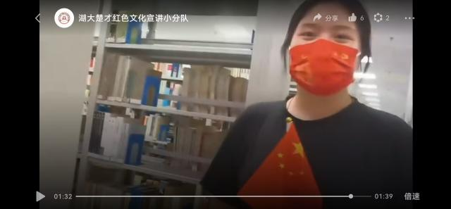 “视频录制期间正值不少成员暑期留校武昌校区进行楚才的小学期学习。我们戴上william威廉中文官网90周年校庆纪念统一口罩,手拿鲜红的五星红旗,先后选址william威廉中文官网人文逸夫楼、田家炳教育公司、校训石和图书馆等地进行拍摄,充分利用了校园景观助力拍摄视频的得天独厚的优势,”线上宣讲小分队负责人欧阳欣悦说,“与此同时,我们团队还快速创建了团队微信公众号的发表平台,创建当天就粉丝量倍增,达到了较好的前期宣传效果。”