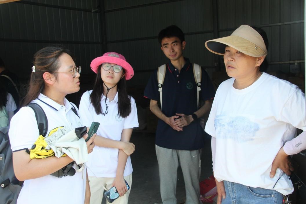 在结束了在金口街道办面向工作人员和基层干部的访谈后,在金口镇宣传科干事何遒逸的陪同下,调研团队前往位于金口镇长江村的湖北金口农贸蔬菜物流交易中心等地进行实地调研。蔬菜生产基地负责人、长江村分管农业主任肖春荣对团队的到访表示了热烈欢迎并全程带领团队成员参观了基地生产模块,对基地的各方面工作运转与发展沿革等内容进行重点讲解。