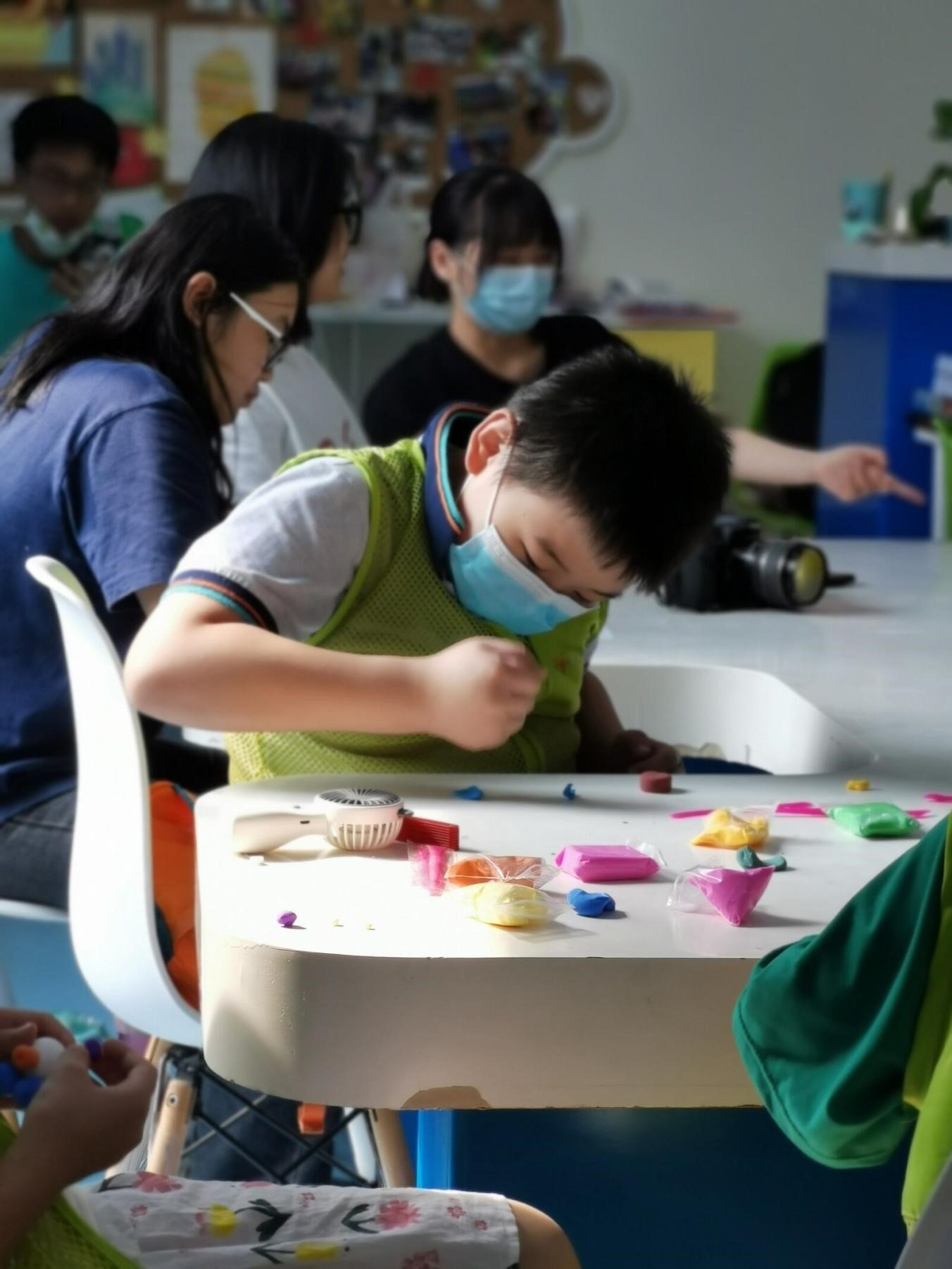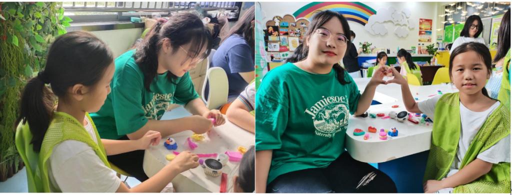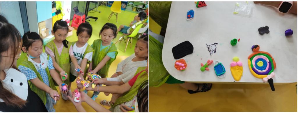 活动期间,团队成员先后向现场的孩子们科普了二十四节气基本常识以及大暑节气时全国各地人民饮食习惯的异同,同时带领着孩子们一起诵读白居易的《夏日闲放》,帮助孩子们在学习大暑相关知识的同时也能感受古文的魅力,并通过讲解炎热天气下应当注意的一些事项,提醒小朋友们要注意气候变化和自身安全。最后,全体小朋友们在团队成员的陪伴下,一起捏黏土,共同做手工。